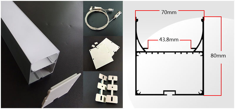 | 铝外壳1条 + PC罩1条 + 塑料堵头2个 + 吊绳2个 + 卡扣2个 + 螺丝1套 | |||